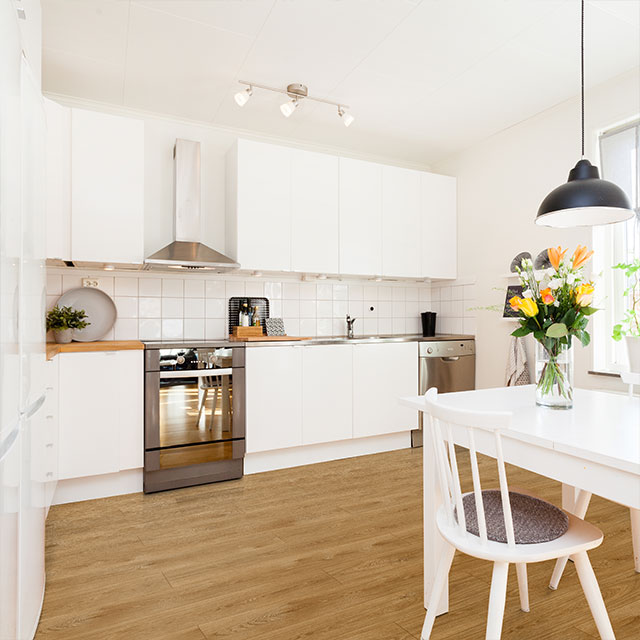 - Regularly sweep floor to remove sand and grit that can scratch floor.